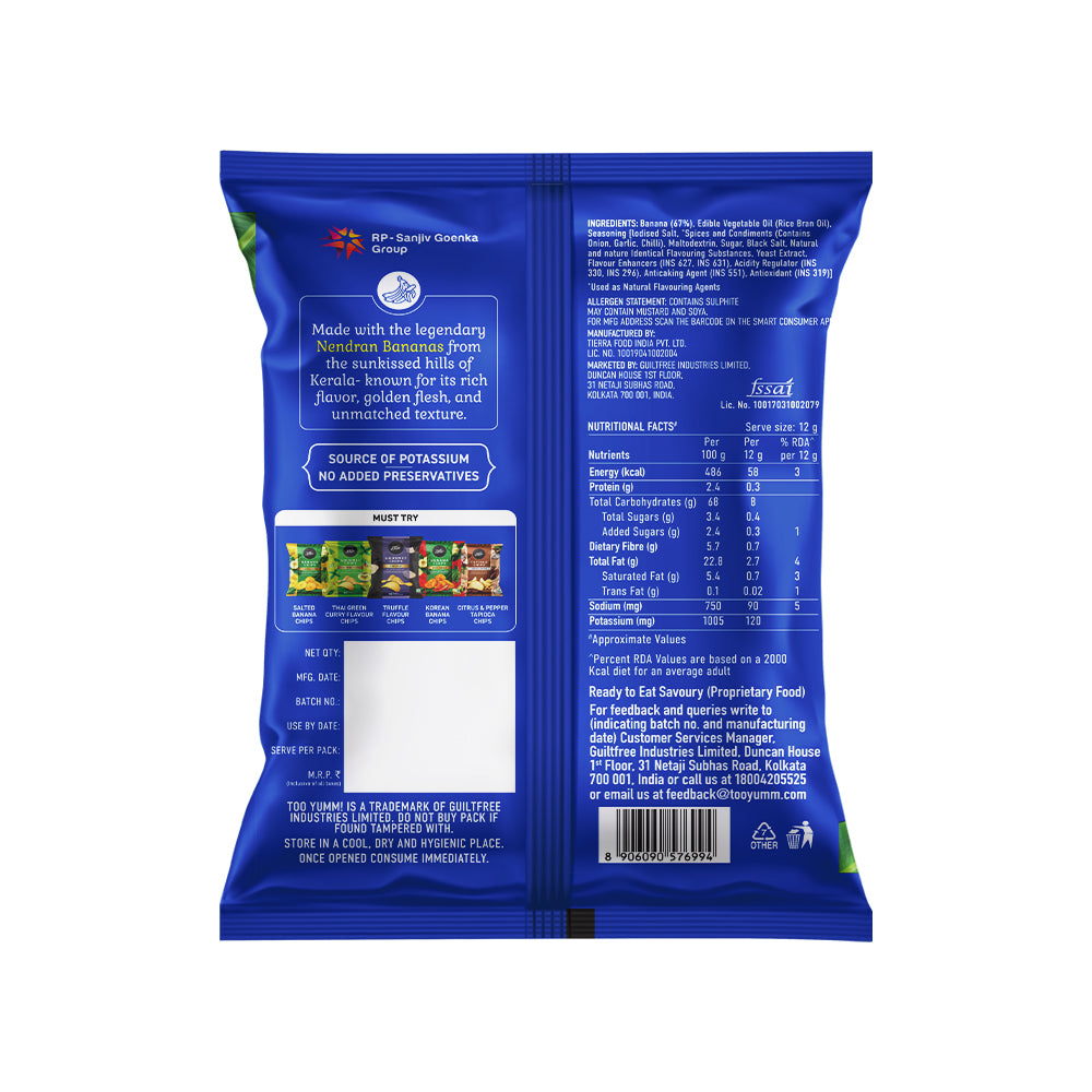 Indulge in the crispy and crunchy texture of masala banana chips, that is authentic from Kerala and perfect for those looking to experience the region's culinary traditions. Gluten-free and made without palm oil, they bring you an authentic taste of tradition, perfect for those who love a flavourful snacking experience!