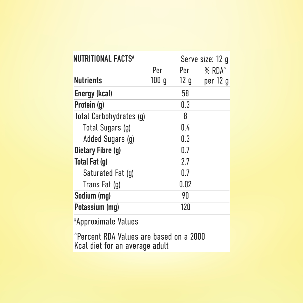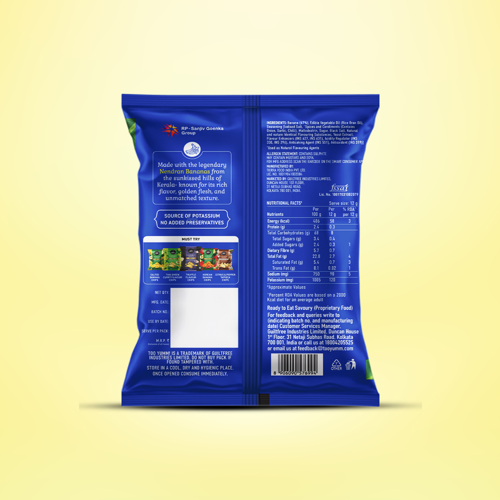 Indulge in the crispy and crunchy texture of masala banana chips, that is authentic from Kerala and perfect for those looking to experience the region's culinary traditions. Gluten-free and made without palm oil, they bring you an authentic taste of tradition, perfect for those who love a flavourful snacking experience!