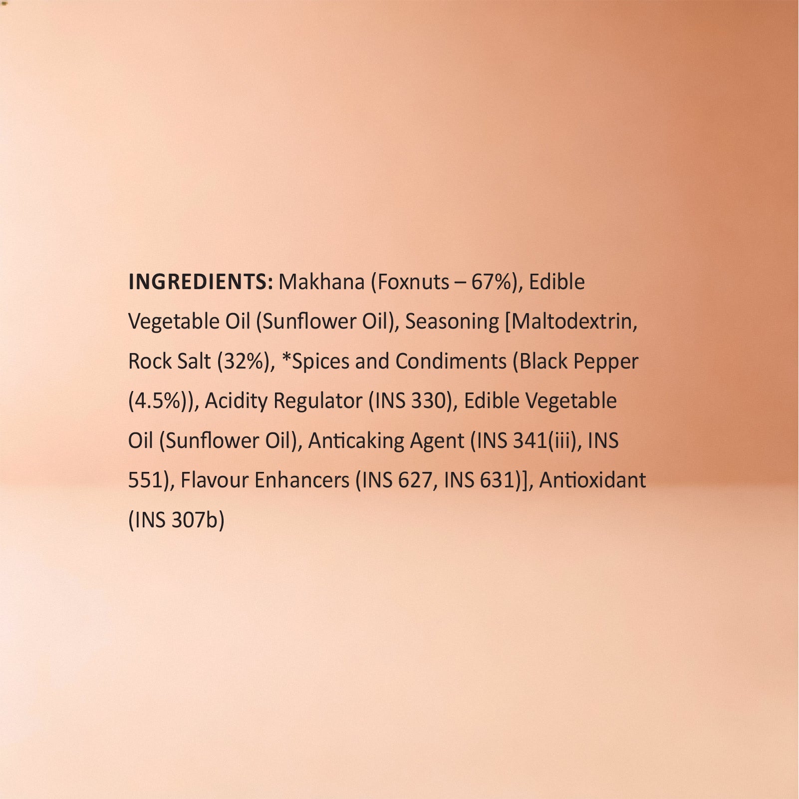 Light, clean and perfectly seasoned, Too Yumm! Himalayan Pink Salt & Pepper Makhana is crunchy and perfectly seasoned with Himalayan pink salt and cracked black pepper. Made with no palm oil, these crunchy fox nuts are a guilt-free, fasting-friendly snack that’s easy on the stomach and big on taste—perfect for mindful munching anytime, anywhere.
