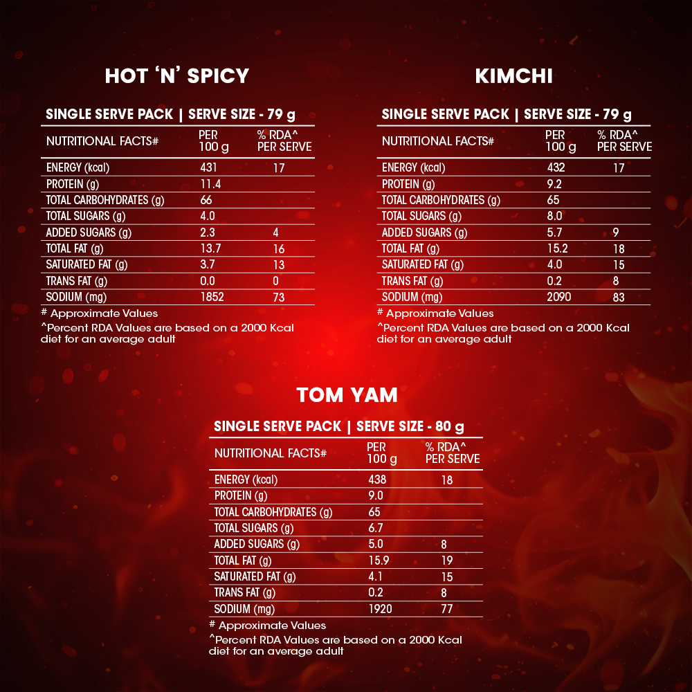 Indulge in the bold flavours of Too Yumm! K-Bomb Ramen Kimchi Flavour Instant Noodles. Inspired by the world-famous Korean taste, these noodles deliver a perfect balance of tangy spice and deliciousness. With no added preservatives and no palm oil, they are an ideal snacking partner when you crave something tasty yet mindful.