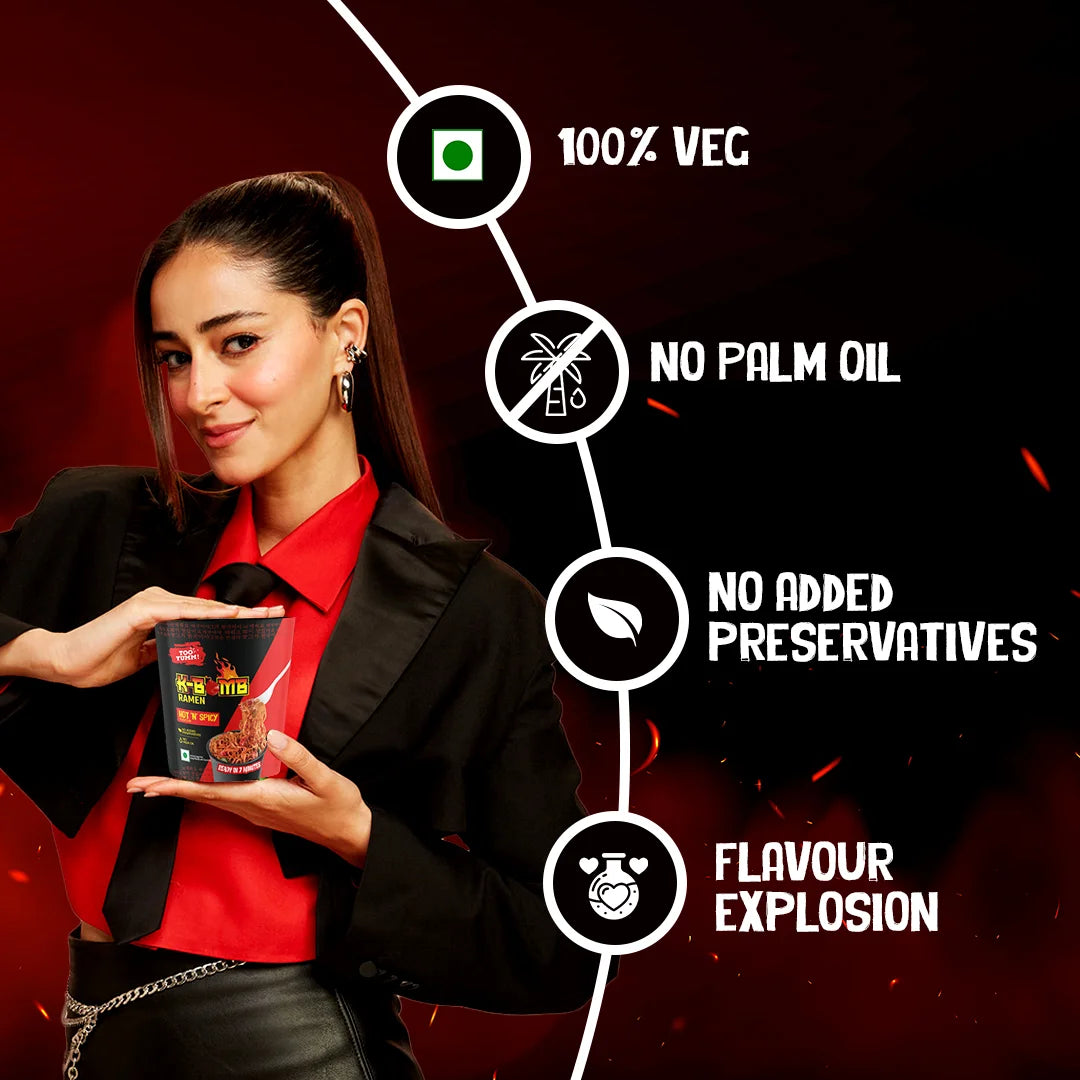 Spice up your snack time with Too Yumm! K-Bomb Fusion Hot N Spicy Instant Noodles. Packed with bold, fiery flavours, these noodles deliver the perfect kick for spice lovers while staying true to mindful snacking. With no added preservatives and no palm oil, they’re your go-to choice for a quick, satisfying, and irresistibly spicy treat whenever cravings hit!