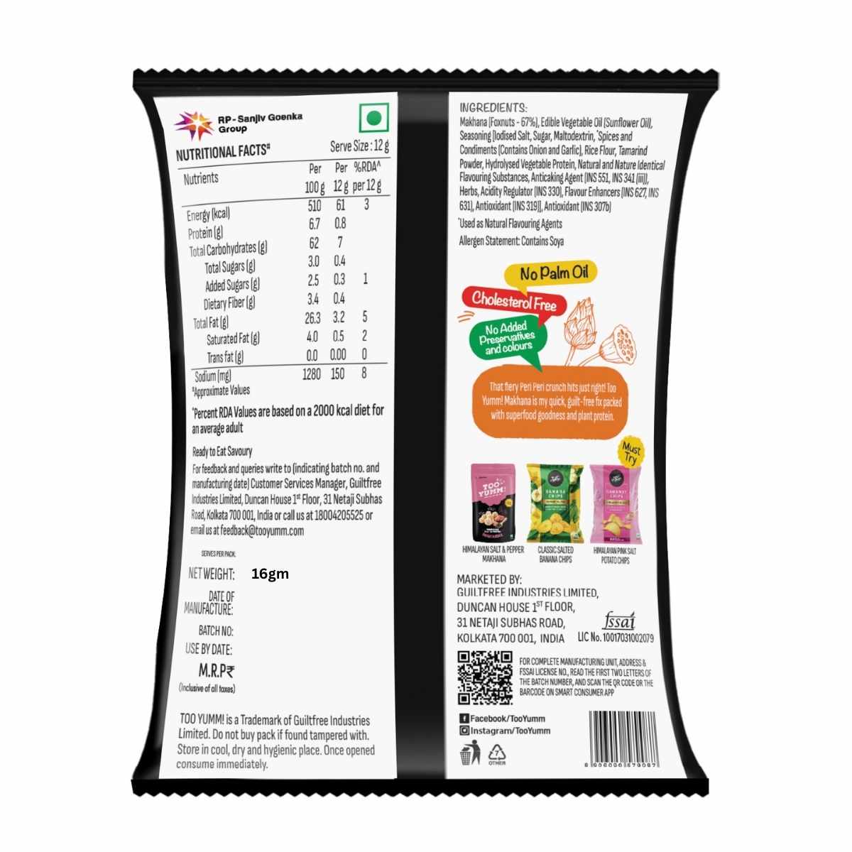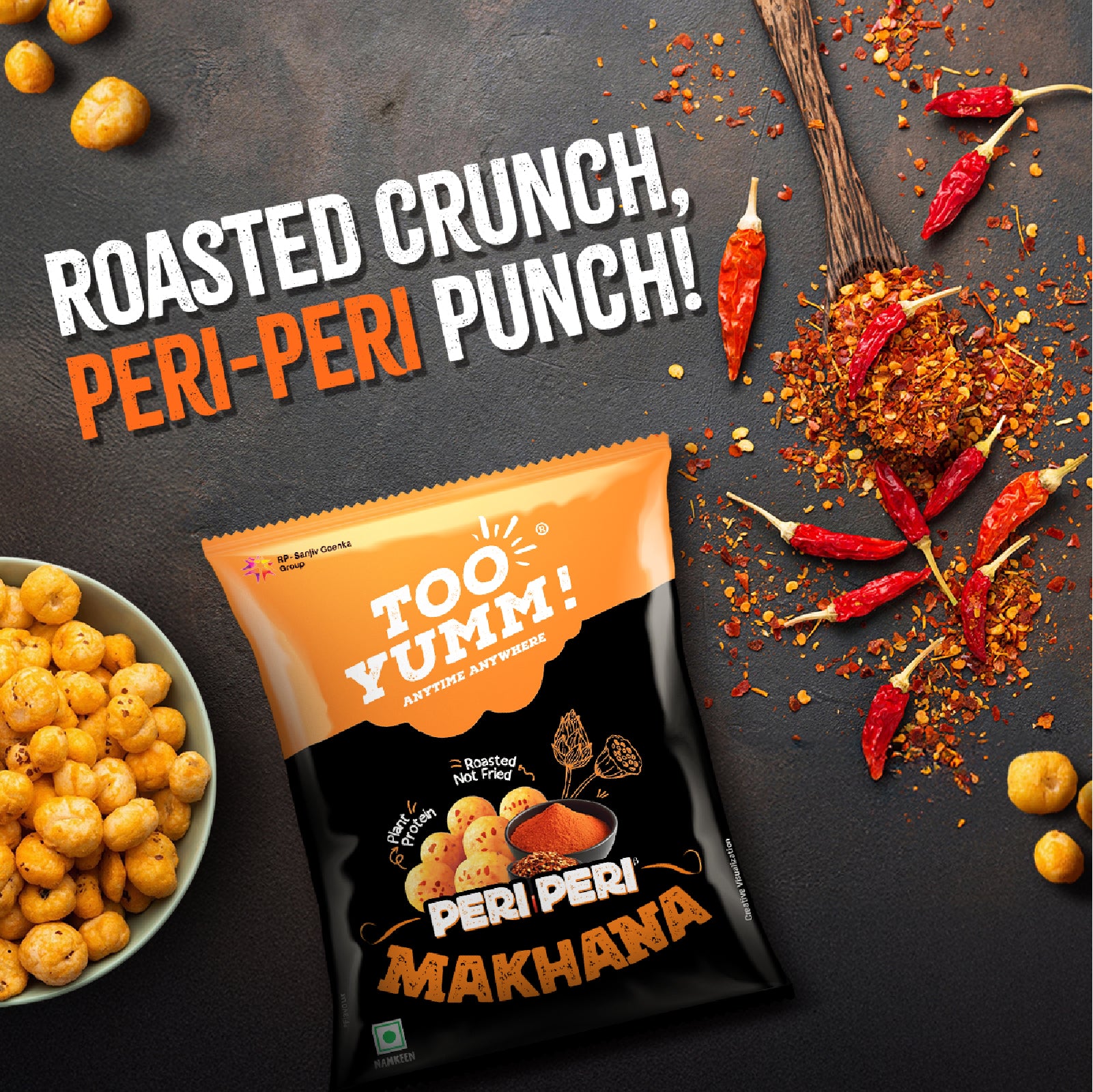 Too Yumm! Peri Peri Makhana brings a bold, fiery twist to your snacking routine. Roasted foxnuts tossed in a tangy, spicy peri peri seasoning that hits just right—zesty, punchy and addictive.