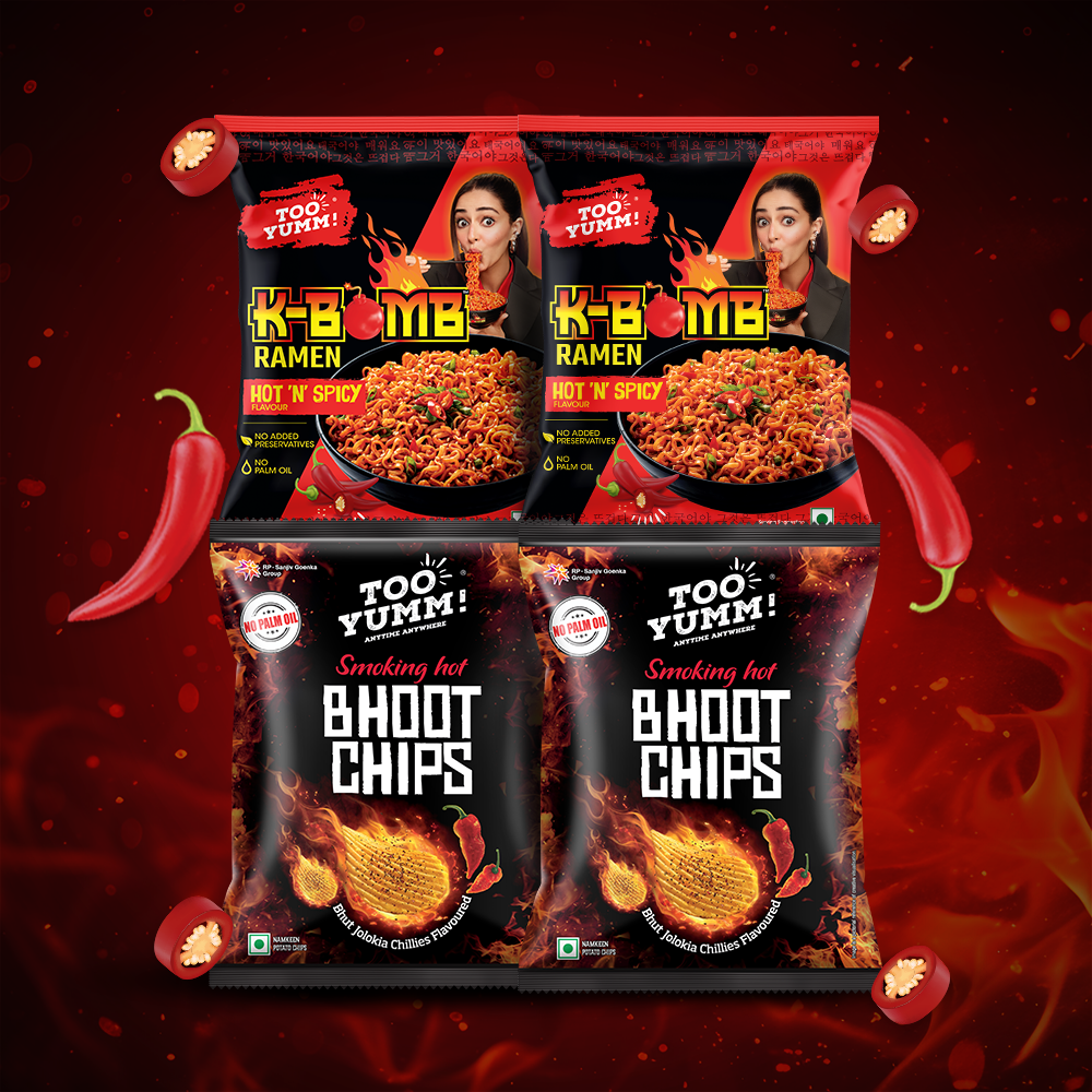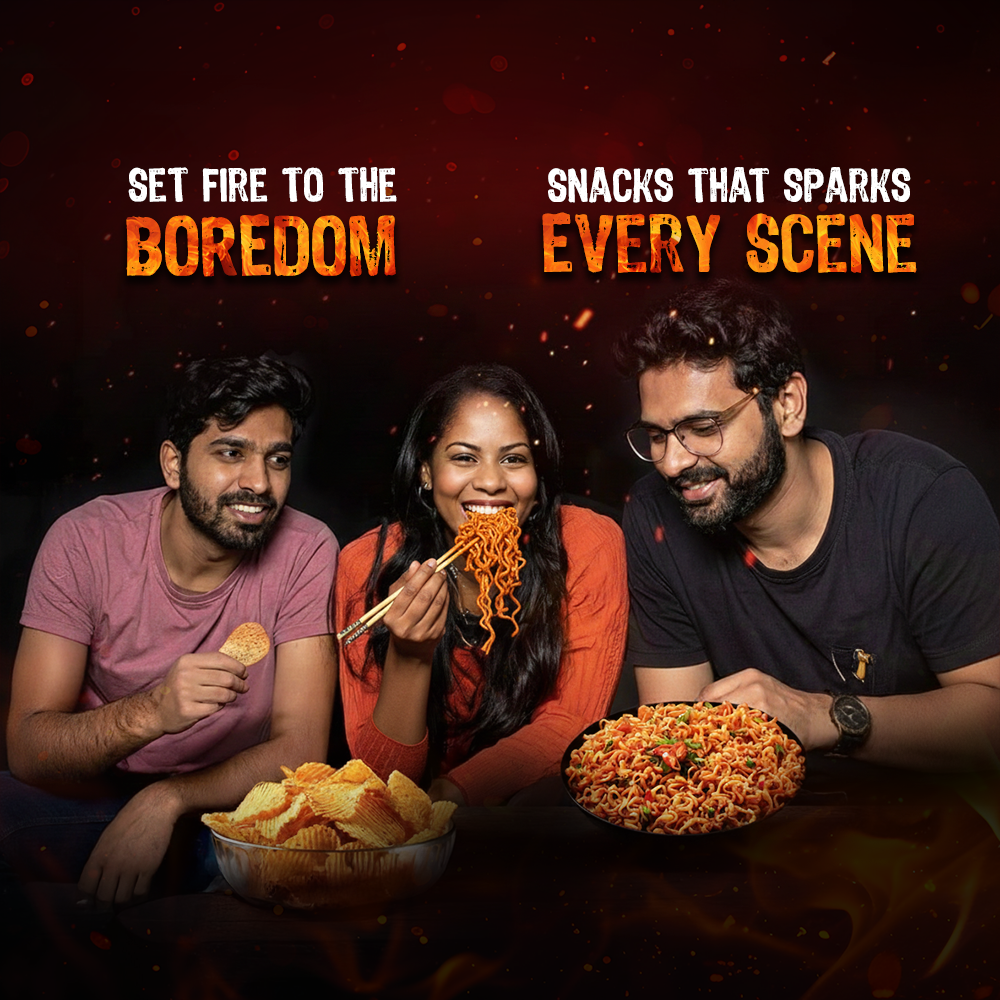 Set your taste buds on fire with Bhoot Chips! Featuring the fiery Bhut Jolokia flavour, these spicy potato chips are 100% veg, zero palm oil, & made with 100% rice bran oil. With 35% less saturated fat, it's a fiery crunch you can feel good about.